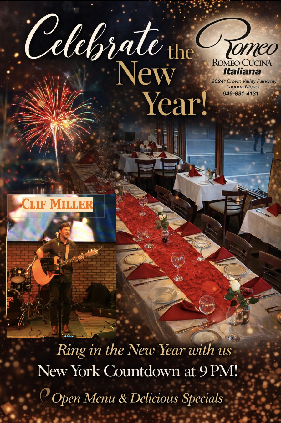 Romeo Cucina Laguna Niguel NYE Weds Dec 31st 6-10 pm
